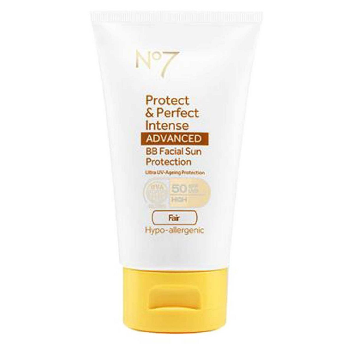 No7 Protect & Perfect Intense ADVANCED BB Facial Sun Protection SPF50 Fair 50mlOur most advanced anti ageing facial sun protection combined with the technology from our clinically proven Protect & Perfect Intense ADVANCED serums gives powerful triple protection against sunburn as well as a healthy, tinted complexion.The No7 Protect & Perfect Intense BB Facial Sun Protection contains a skin brightening complex to help improve skin tone and colour whilst helping to prevent dark spots and hyper-pigmentation.