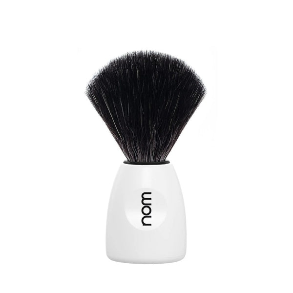 This Nom Lasse shaving brush offers a quality, no-frills design constructed for effective wet shaving. Its plastic handle features a stylish recess, offering improved grip during use. This brush is developed as a purely vegan alternative for your grooming routine.