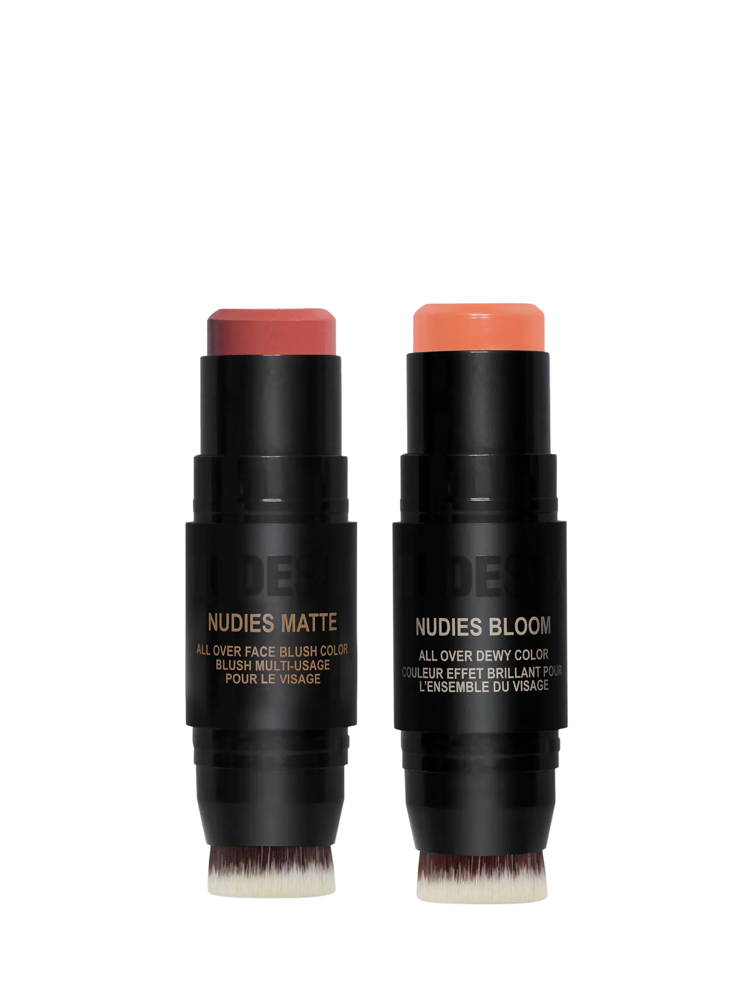 Nudies Matte Blush & Bronze is an all-in-one, soft, matte-cheek blush, natural eye colour, and creamy lip colour.