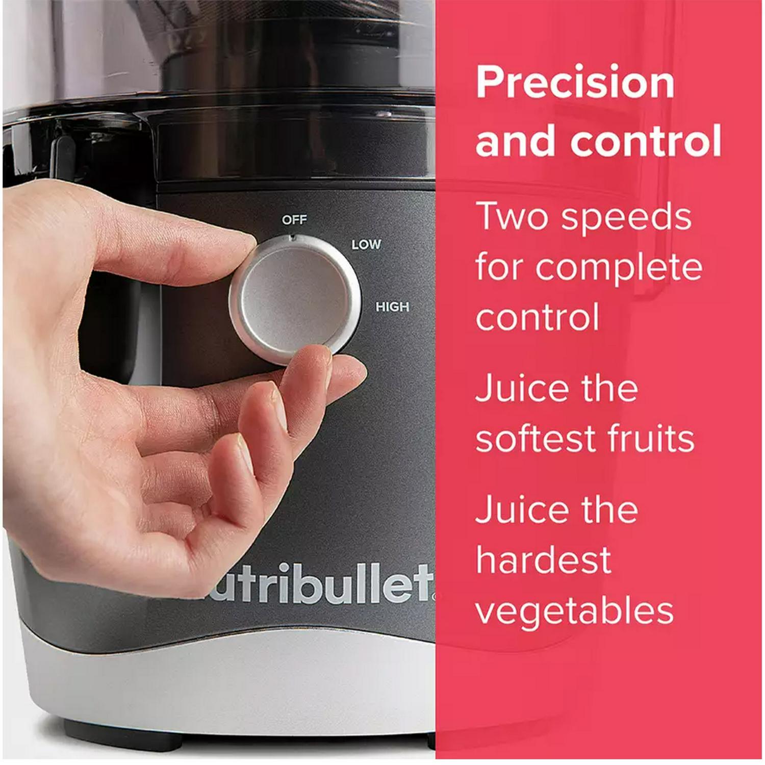 More precision, less waste: the simple way to use control features two speeds to give you full control whether you're using the softest or the hardest fruits and veggies, so you can get the most out of your produce. A no-drip spout ensures you don't miss a drop.