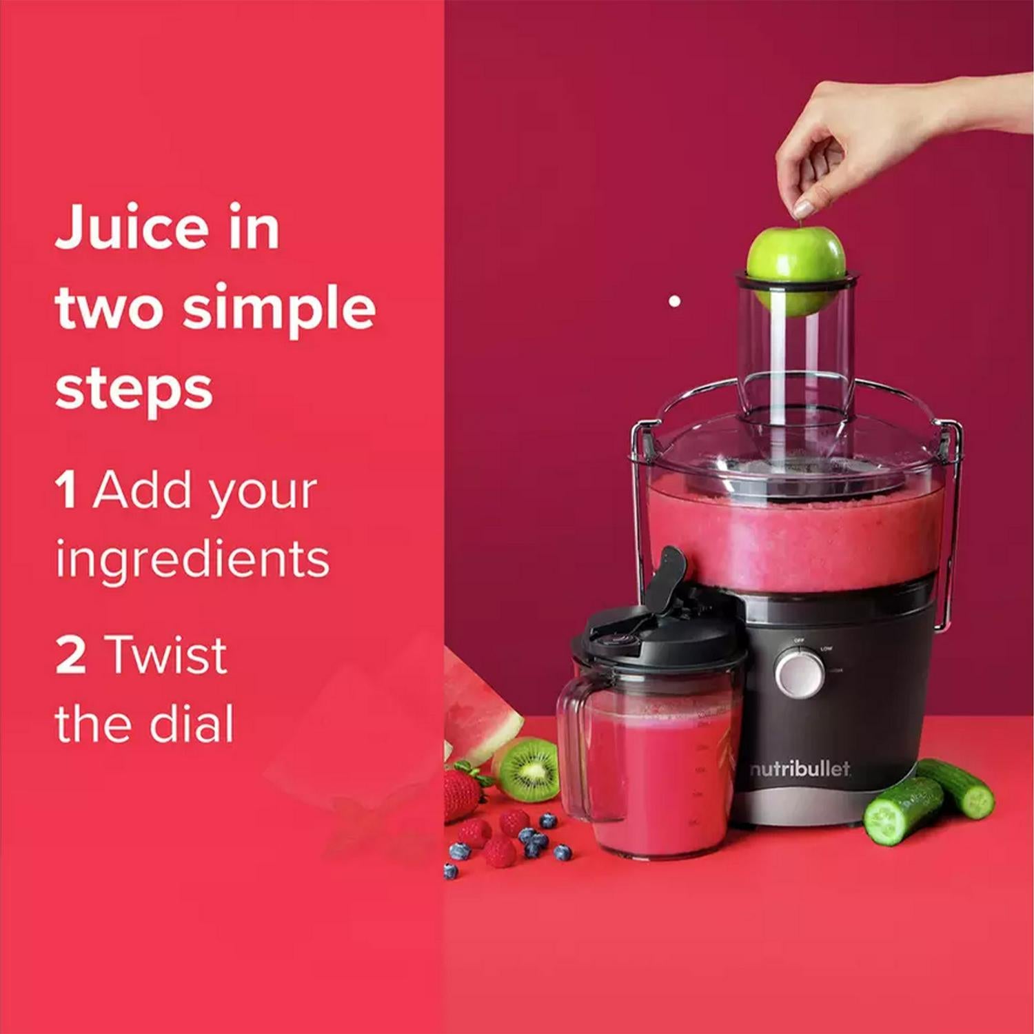 Juice in two simple steps: it's all about convenience. Simply add your ingredients into the feed chute and twist the control dial for instant, silky smooth juice the whole family can enjoy.