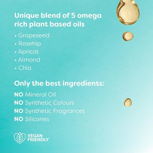 84% of women saw an improvement in the appearance of stretch marks*Body Oil formulated to help with Scar Treatment, Stretch Marks & Dry Skin.This nutrient-dense moisturising formula is enriched with 5 Omega-Rich Oils like Rosehip, Sweet Almond, Grapeseed and Chia along with replenishing Vitamin E & hydrating Squalane. A deeply nourishing, moisturising and restorative oil, it is rich in essential fatty acids and antioxidants and helps to assist the skin in becoming more supple to improve the appearance of scars & stretch marks in just 8 weeks. Key Benefits:⢠Proven formula, caring for you with cleaner ingredients⢠Excellent to apply on your body but also suitable for the face⢠A gentle but effective treatment for old and new Scars, Stretch Marks as well as Dry Skin. This oil has a lightweight texture, which is easily absorbed into the skin and replenishes hydration for improved elasticity. ⢠Use it at least twice a day, the longer you use, the better results you will achieve. Made in UK.8 week results81% of women saw a reduction in the appearance of scars *84% of women saw an improvement in the appearance of stretch marks*87% of women agreed that their skin felt more supple *89% of women saw an improvement in the appearance of skin texture*90% of women agreed that the appearance of their dry skin improved*12 week results88% of women saw a reduction in the appearance of scars *93% of women saw an improvement in the appearance of stretch marks *95% of women saw an improvement in the appearance of skin texture*95% of women agreed that the appearance of their dry skin improved*