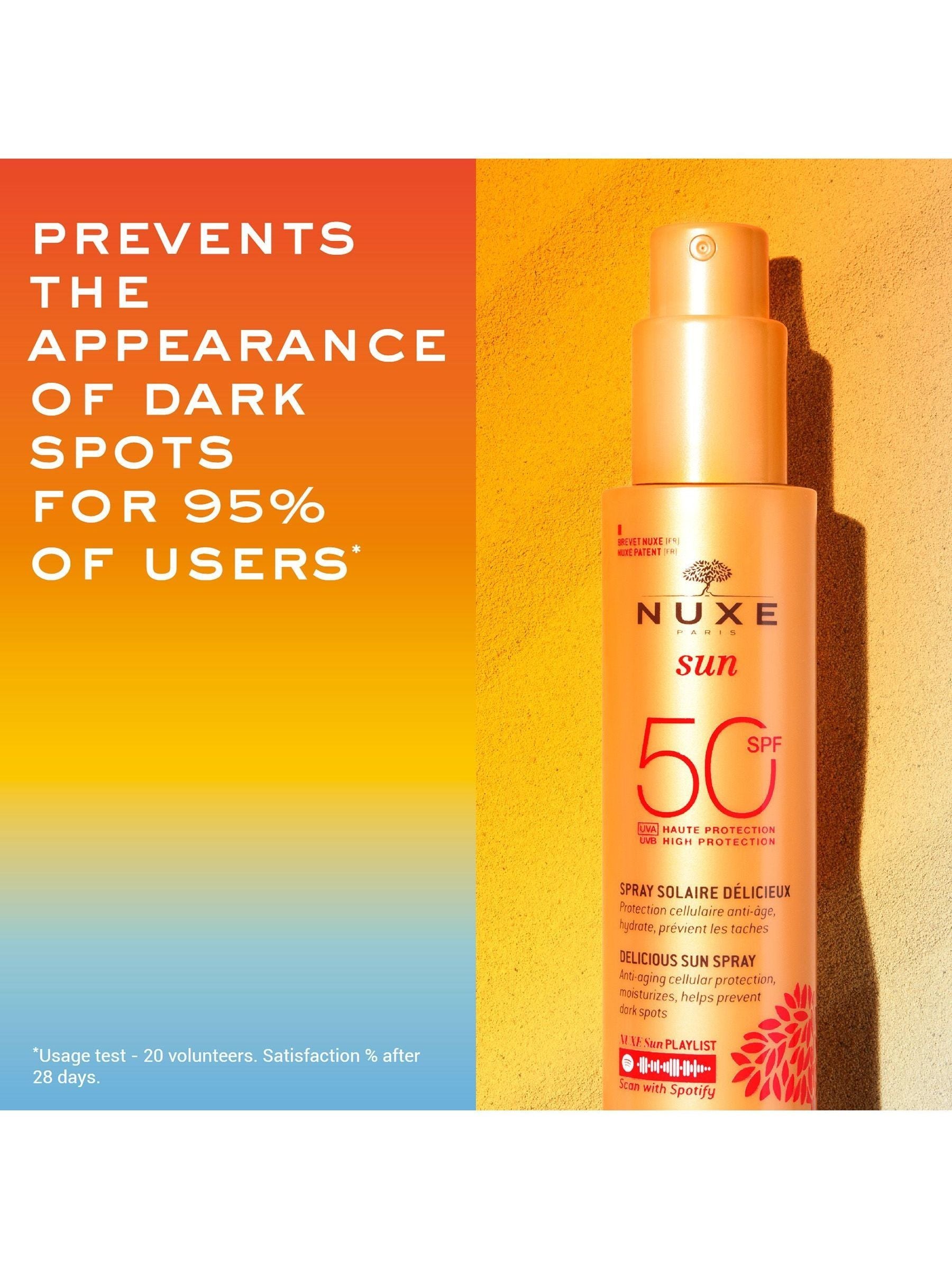 This SPF 50 sun spray helps to protect your face and body from UVB/UVA rays and premature ageing of the skin to prevent the appearance of dark spots. Resistant to both water and perspiration, its formula is ideal for any outdoor or sporting activities. Spray its fluid texture in the blink of an eye and enjoy the sensation as it melts over your skin without leaving any white film. This delicious blend of Sweet Orange, Tahitian Gardenia and Coconut is Summer in a bottle!Natural-origin extracts of Rice, Rosemary and Vitamin E: Renowned for their anti-oxidant power, they contribute to anti-ageing cellular protection of the skin. Kau Pe Flower extract: Recognised for its soothing properties, calms sensations of overheating linked to sun exposure. Water Hyacinth (patent FR) and botanical Glycerin extracts: protect the skin from dehydration.Photostable and water-resistant formula. Non-comedogenic. No animal-derived ingredients. PATENT NUXE (FR).NUXE skincare is formulated and produced in France.