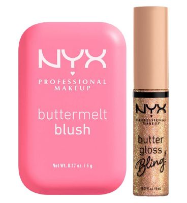 This curated makeup duo features two distinct NYX Professional products designed to enhance your look. You receive the Buttermelt Blush in shade 02 and the Butter Gloss in the shimmering Bring the Bling shade. This convenient set provides essential colour coordination for achieving defined features.