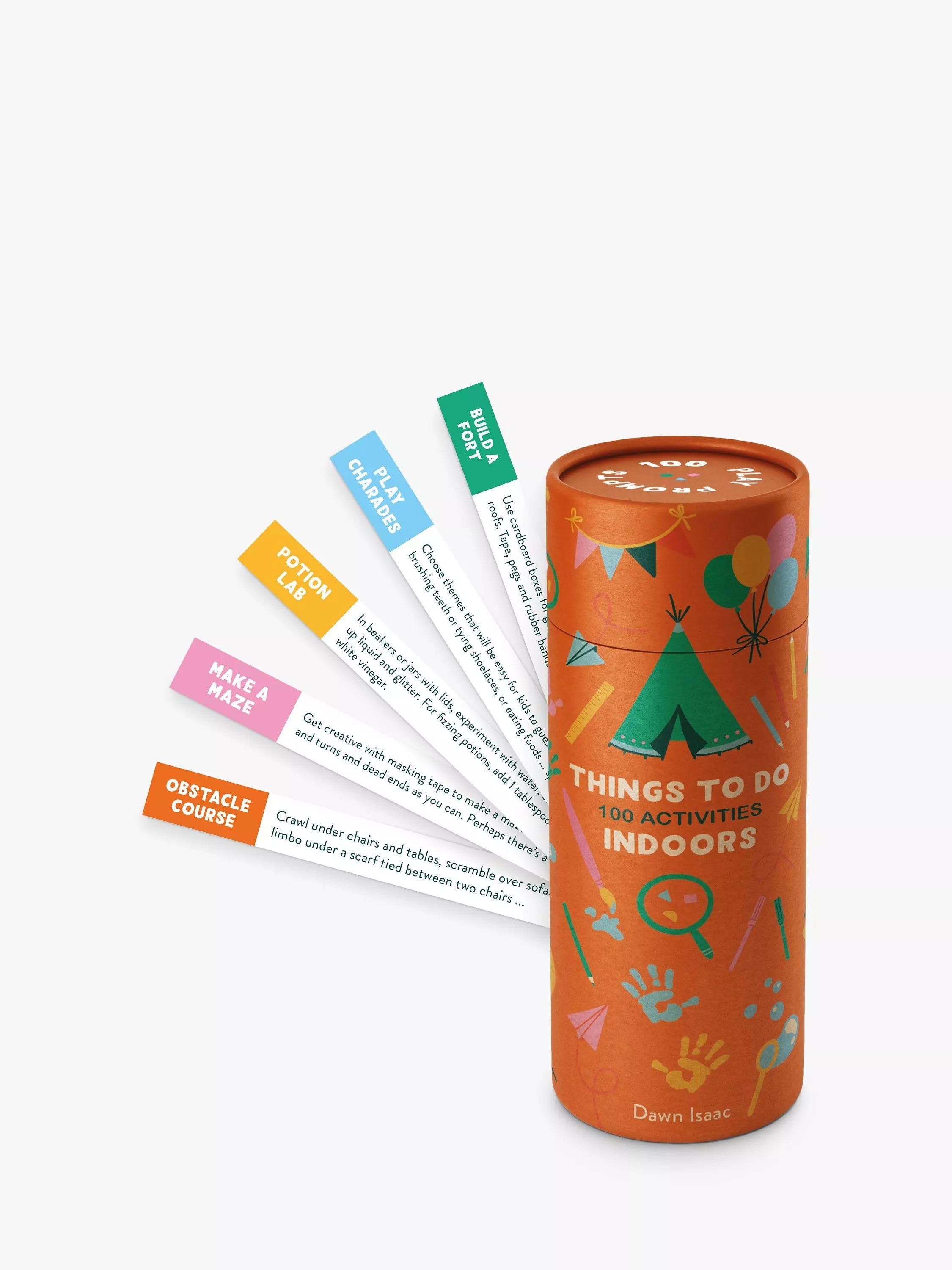 "I'm bored' must be the most frightening words in a child's vocabulary, and how to keep kids entertained is something that keeps many of us awake at night. 100 Things to Do Indoors is a collection of games, activities, prompts and projects to keep little and not-so-little ones focused, busy and happy. From simple and silly things to distract them for ten minutes to crafts and experiments to keep them entertained for an afternoon, there's a boredom buster for everyone.