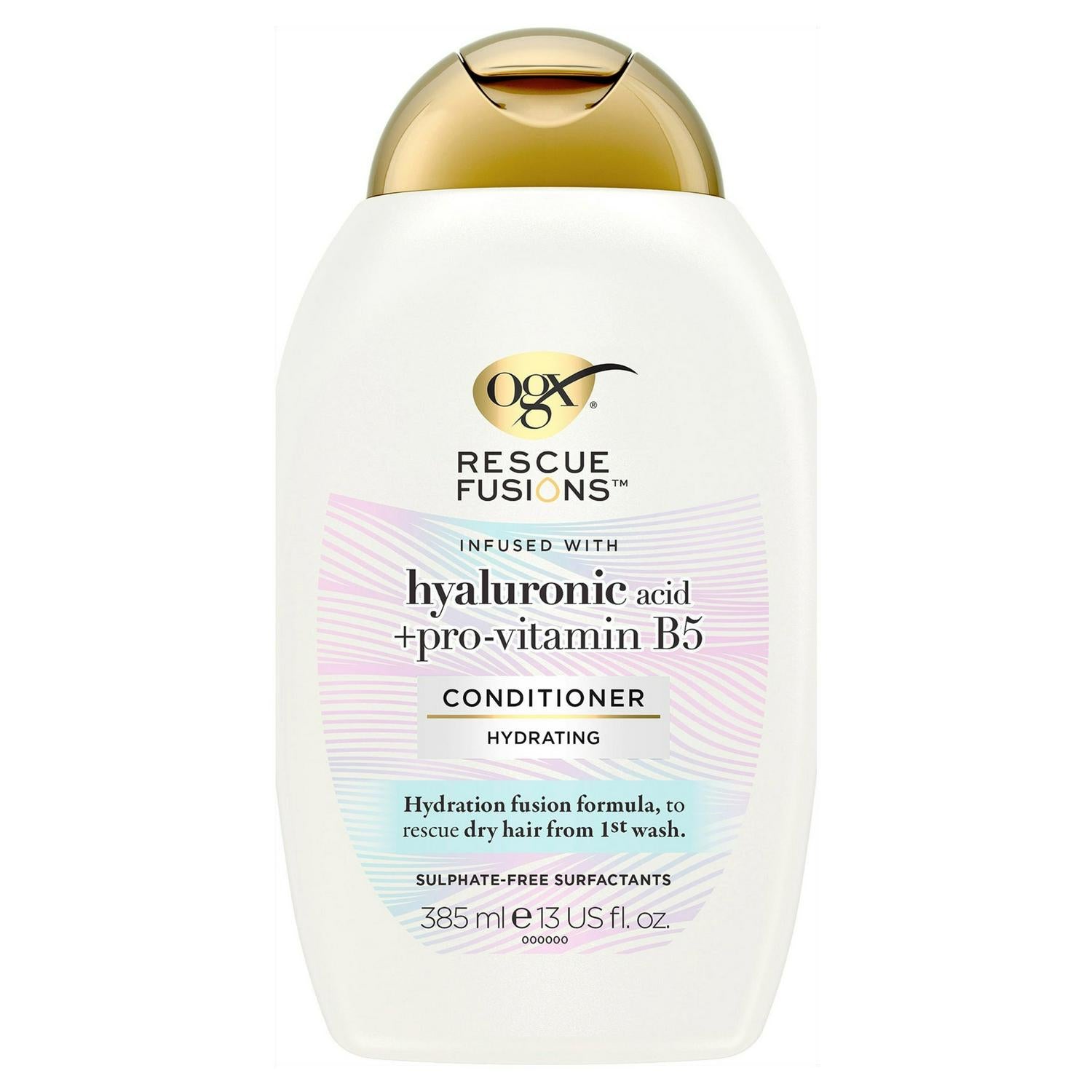 This OGX Rescue Fusions Conditioner is formulated to hydrate and revive dry hair effectively. Its rich blend, featuring Hyaluronic Acid and Pro Vitamin B5, works to restore moisture balance for improved hair health.