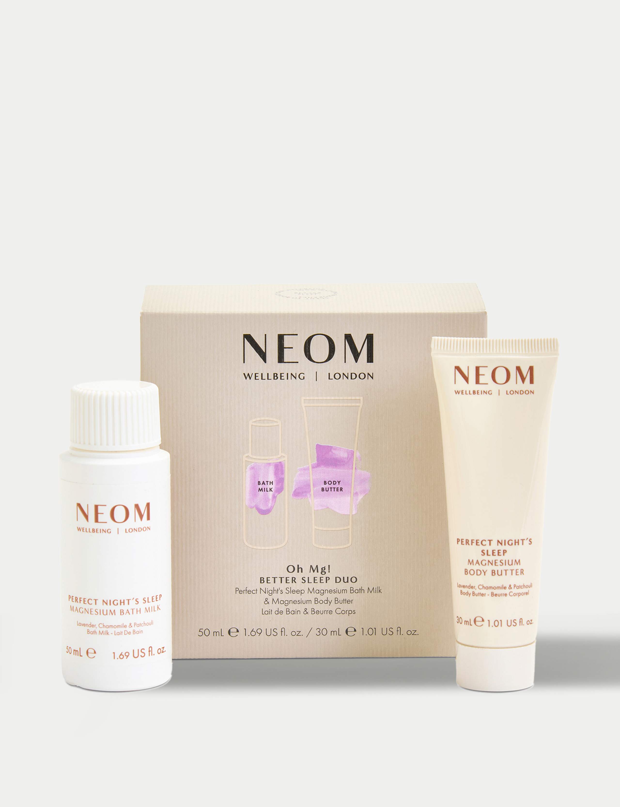 Unwind from your busy day using the Oh Mg! Better Sleep Duo to establish your pre-sleep haven. This set pairs the Perfect Night's Sleep Magnesium Bath Milk with the soothing Body Butter, both enriched with magnesium to encourage relaxation.