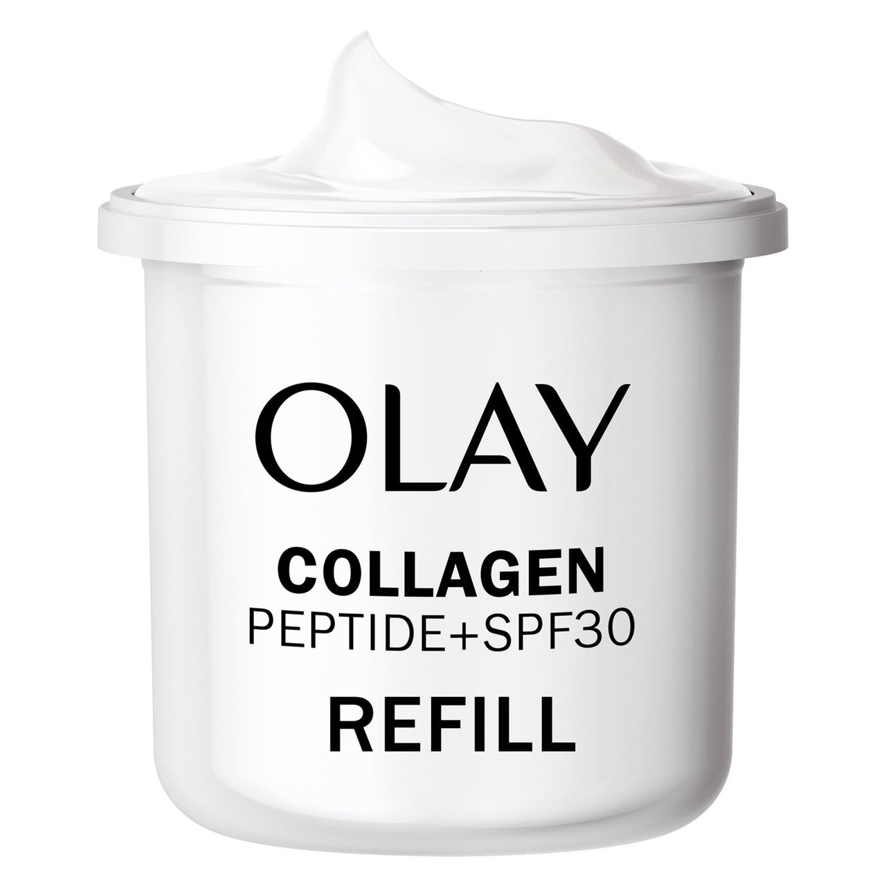 Your Olay glass jar is empty? Keep it and refill it with Olay POP Collagen Peptide SPF30! Pop in this refill into your day moisturiser and protect your skin from harmful UV exposure, which is the N.1 cause of premature signs of ageing. Olay's Collagen Peptide SPF30 features our unique SolaSheer technology that provides effective SPF30 UVA & UVB broad spectrum protection. And it does not stop there: it also strengthens and restores your skin. A potent formula designed to deliver visible results over time: it instantly hydrates for 24 hours; after 1 day, skin's appearance is smoother and restored; in just 14 days, skin is visibly stronger and firmer. Expertly crafted with a combination of Collage Peptide, that helps improve the appearance of fine lines and wrinkles, 99% pure Niacinamide, that penetrates up to 10 layers deep to help activate surface cell renewal and SPF30. Non-greasy, this excellent formula has been dermatologist approved for up to 30% stronger skin.