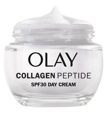 Read MoreSkin needs an advanced restoring day moisturiser with SPF 30? Discover our potent Olay Collagen Peptide SPF30 face cream, delivering transformative skin results instantly and overtime. This moisturiser is crafted with Collagen Peptide, that helps improve the appearance of fine lines and wrinkles and 99% pure Niacinamide, that penetrates up to 10 layers deep to help activate surface cell renewal. Experience the power of 24-hour hydration, keeping your skin moisturised throughout the day. In just one day, skin's appearance is smoother and restored. Over 14 days, experience a visibly stronger and firmer skin. Say goodbye to heavy, greasy face creams and welcome our advanced Olay SolaSheer SPF30 technology: an effective broad-spectrum UVA and UVB protection, shielding your skin from harmful rays, that absorbs effortlessly for a lightweight, non-greasy, non-sticky feel on skin. Our formula is now dermatologist approved by the Skin Health Alliance for its effectiveness in helping achieve up to 30% (moisture barrier improvement) stronger skin. Upgrade your skincare Routine with our beautiful (and more sustainable) Refillable Glass Jar! Effortlessly pop in and pop out the refillable pods for a delightful and innovative skincare experience.
