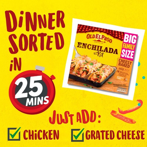 Our Old El Paso Cheesy Baked Enchilada kit is a winner for the whole family, containing wraps, tomato sauce and a seasoning mix.