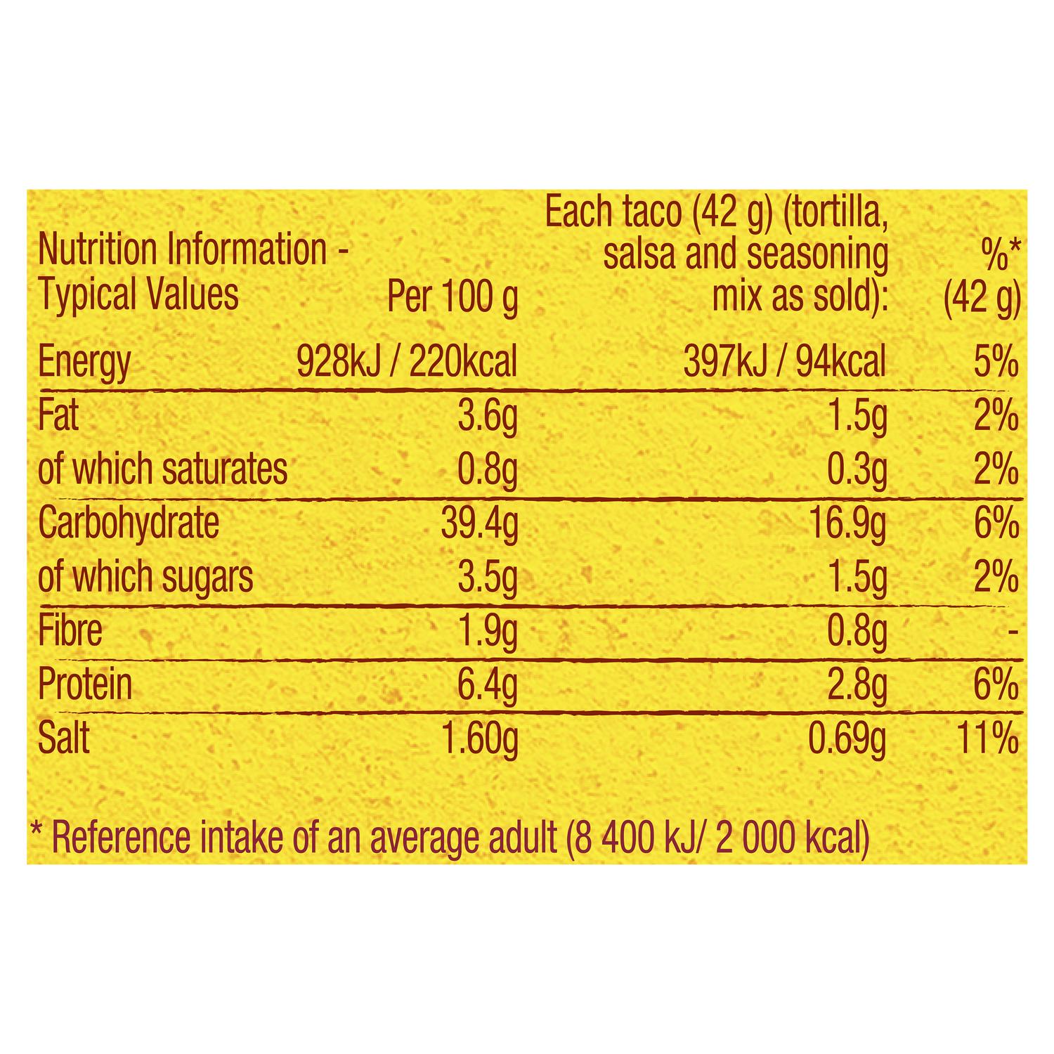 Get eating out vibes, with staying in feels. Turn up the Taste with Old El Paso™ Street Vibes Al Pastor Soft Taco Kit. This Al Pastor Soft Taco Kit contains 6 Soft Flour Tortillas, 1 Fruity Salsa Topping and 1 Paprika Seasoning Mix. Inspired by Mexican Street Food Tacos with Smoky and Sweet Flavours, it's perfect for two! Just add chicken and onion for a quick and easy dinner that's ready in 20 minutes. Serves 2 people. Bring Mexican inspired Street Food flavours straight to your kitchen with Old El Paso™ Street Vibes Al Pastor Soft Taco Kit. Suitable for Vegetarians. Old El Paso™ has been helping the world turn Fridays into Fajita Fridays with our Mexican* inspired food since 1938. Our mission is to inspire that kind of good noise that happens when people truly connect over the taste and the fun of getting together and sharing Mexican inspired food! Whether it’s cooking up sizzling fajitas, crunchy tacos, or a cheesy nacho snack, we'll help you whip up an easy Mexican feast in 25 minutes or less**. Our Mexican inspired range has grown over the years and now features everything from dinner kits, tasty cooking sauces, salsas, dips, seasoning mixes, tacos, tortilla wraps and chips. Enjoy full volume flavour with Old El Paso™, the UK's #1 Mexican food brand!*** We are part of General Mills. * Our products are made in Spain, unless otherwise indicated on pack. ** Enchilada kits 25 minutes cooking time, Fajita Kits 15 minutes cooking time *** Source: Nielsen, 52 w/e Jan 2023