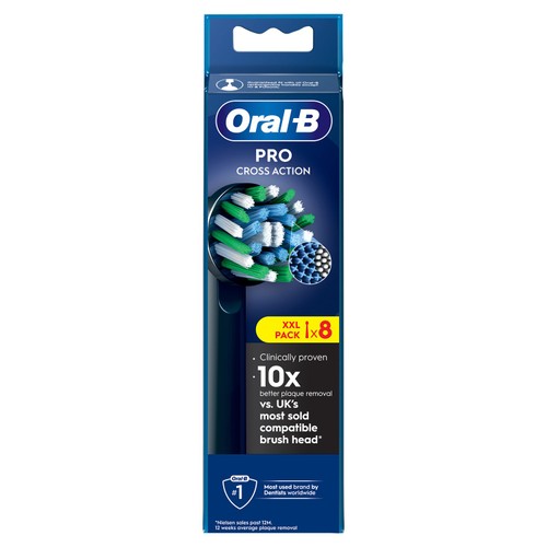 The Oral-B CrossAction toothbrush head is engineered for superior plaque removal compared to manual brushing. Featuring over 2200 precisely angled bristles, this head targets areas standard brushes often miss for comprehensive cleaning.