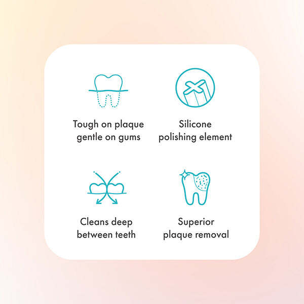 • Cleans effectively between teeth while massaging the gums.
