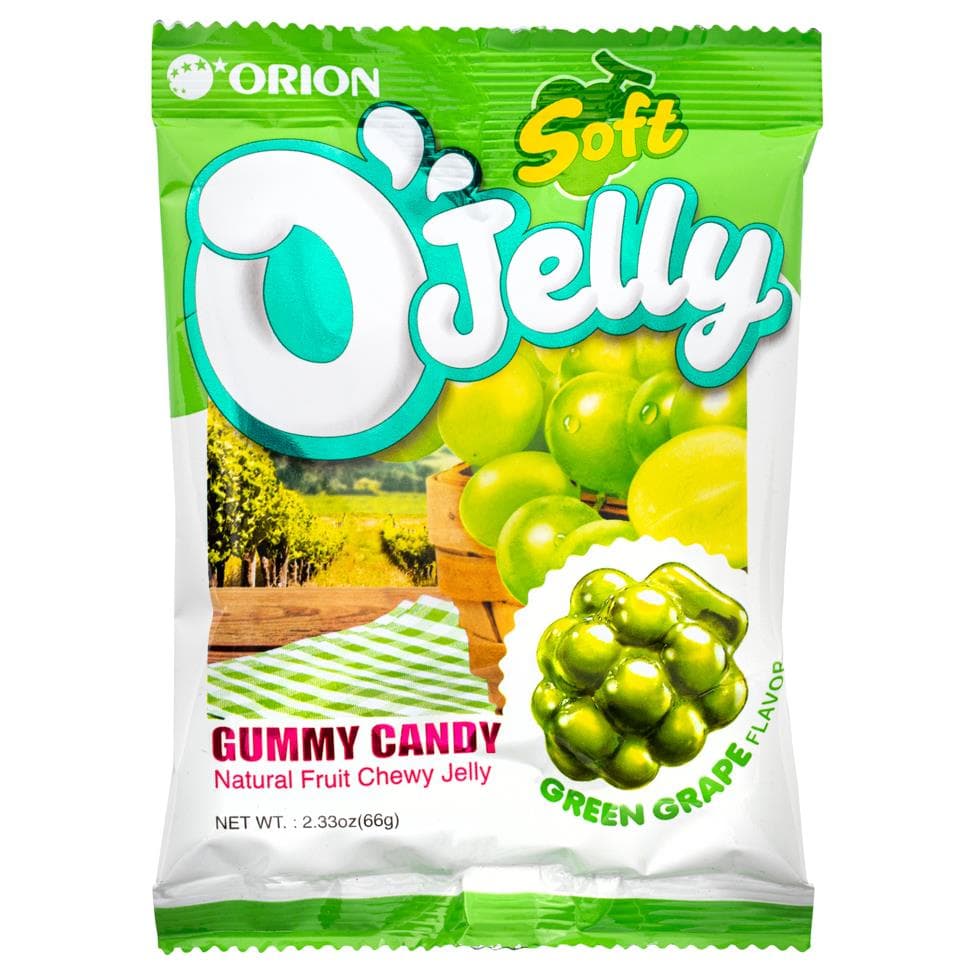Indulge in the refreshingly chewy texture and vibrant green grape flavour of Orion O'Jelly Soft Gummy Candy – a delightful treat perfect for satisfying any sweet craving. These soft gummies offer a burst of fruity sweetness, making them a fun and delicious snack for all ages.