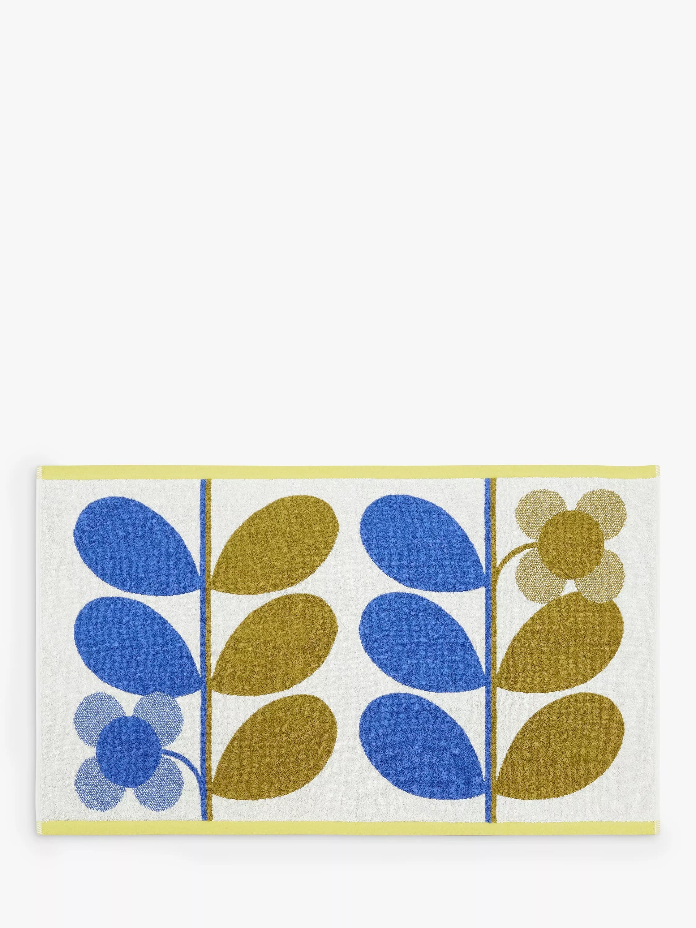 In a retro inspired palette, Orla Kiely's signature stem motif adds a playful touch to your bathroom. This 100% cotton woven bathmat is finished with a bright bordered edge.