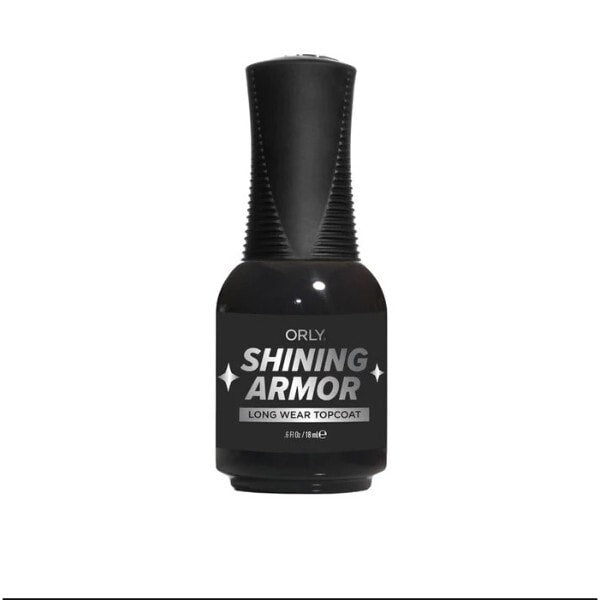 Orly Shining Armor is a quick-drying topcoat designed to deliver a supershiny, gel-like finish to any manicure. This formula extends the wear of your standard nail polish or gel colour while providing exceptional protection. Boost your nails’ brilliance with this powerful shine enhancer complex.
