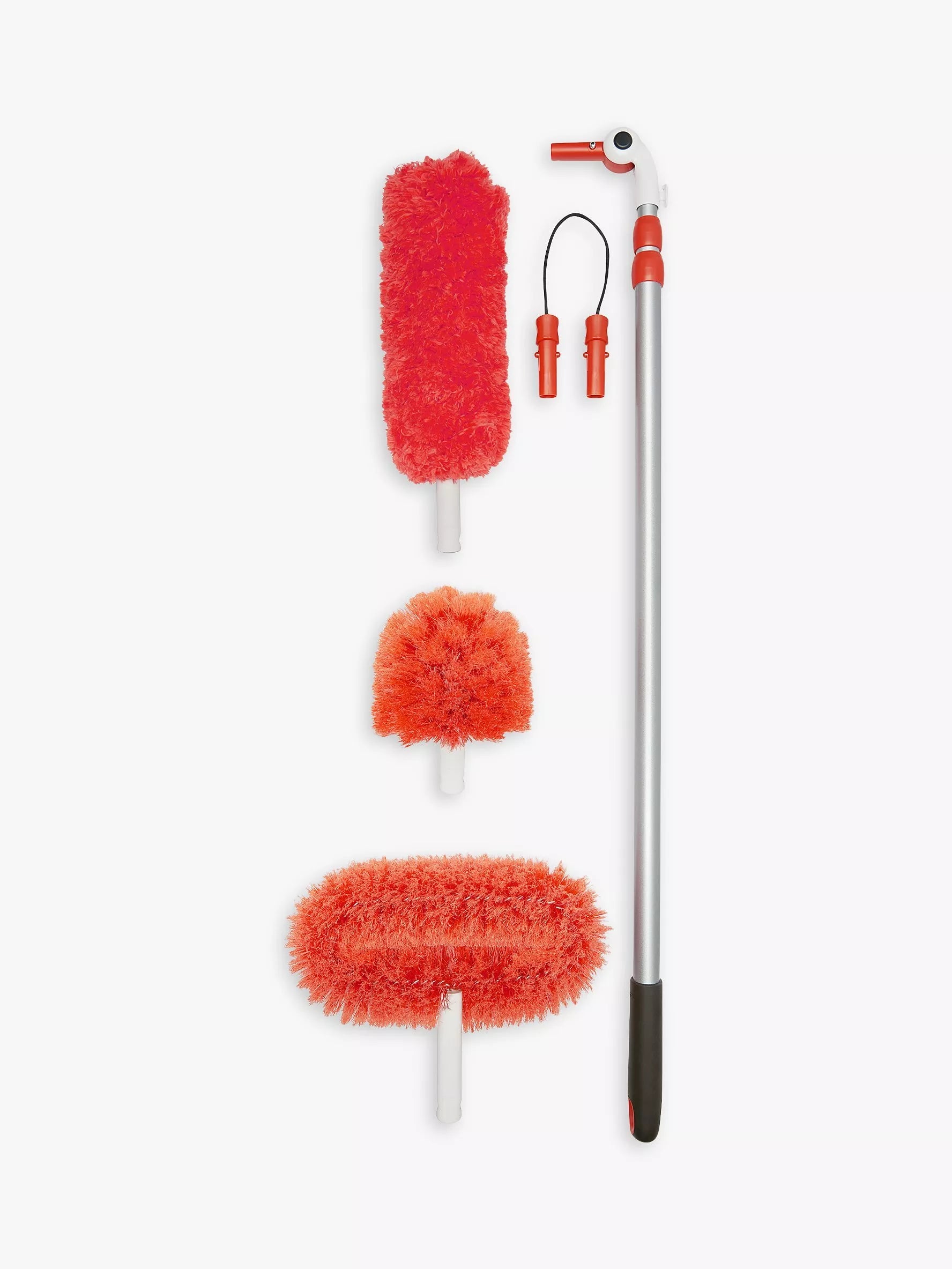 The OXO Good Grips Long Reach Dusting System includes an extendable pole and three interchangeable heads that pivot and lock into a variety of positions to tackle dust at any angle. The stainless steel pole extends up to 2.4m and collapses to 0.9m for convenient storage.