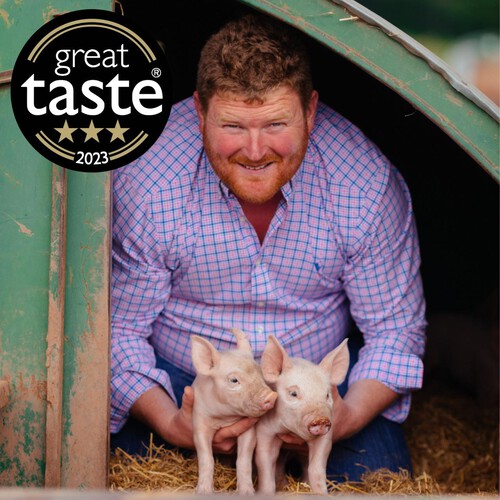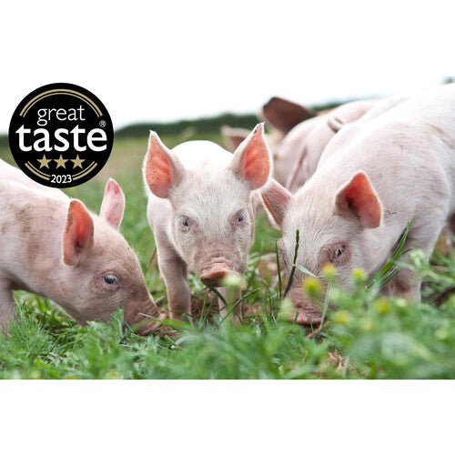 Read MoreGreat Taste 2- star Award 2024 Great Taste 3-star Award 2023 Great Bristish Food Silver Award 2023 Packington pigs are reared to the highest welfare standards and have been well recognised by butchers and the RSPCA Freedom Foods, as the best you can get. All our pigs are born outdoors at Packington. Our sows live their whole lives outside with plenty of space to roam, wallow and be sociable. When the piglets are weaned, they are moved into large outdoor paddocks. Here the piglets have the benefit of well bedded, cosy tents, while still being able to run around outside. A happy pig is a healthy pig! At twelve weeks of age, our piglets are moved into large, naturally lit sheds with an outdoor area, where due to our low group numbers, we can ensure the welfare of the pig remains paramount. Tended by our farmers, the pigs are protected from the elements, with lots of space, natural light and natural ventilation, and deep straw beds. Our pigs develop and mature to produce the delicious meat you've come to expect from Packington. It may take longer to produce pigs in this way and cost a little more, but the results are worth it, and all our customers agree. All our pork is prepared, hand cut and packed by Jon Thorner's, a Q Guild Master Butcher. As a family butchery business, they understand the needs of the customer and their requirements enabling us to bring this truly superb product to you. We know you'll enjoy it. Rob Mercer