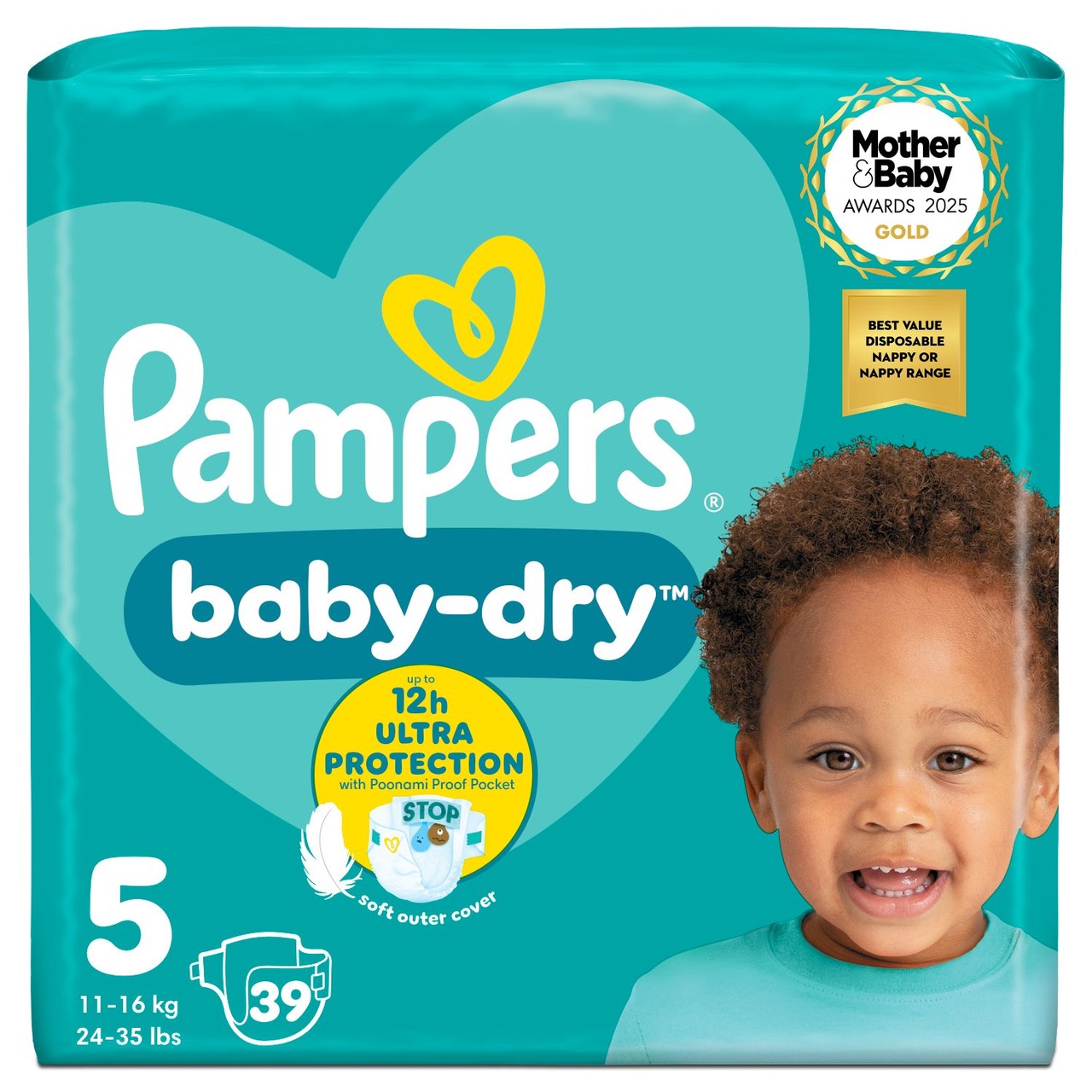 Pampers Baby-Dry Nappies Size 5 (11-16kg) - 39 Pack