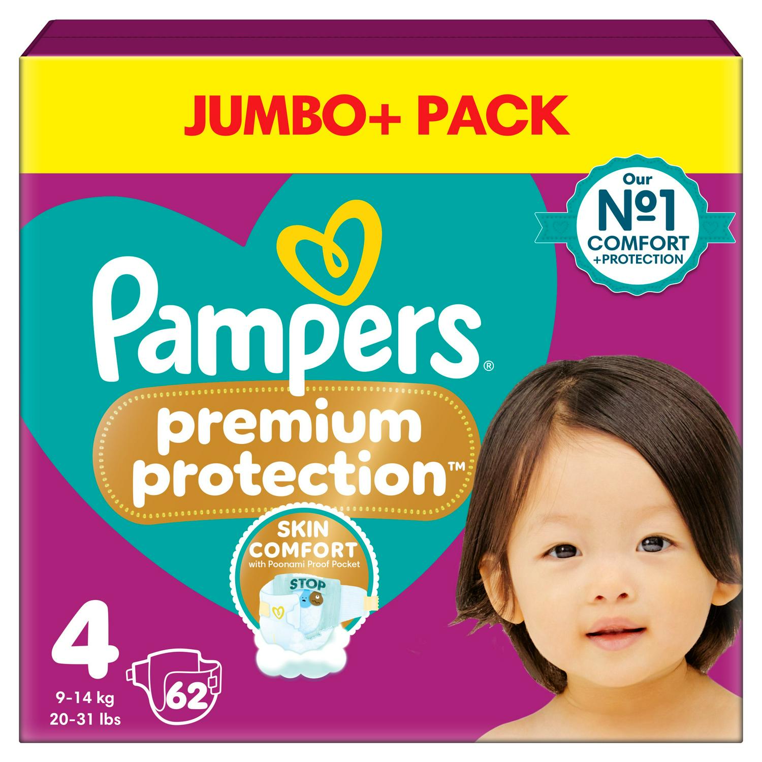 DOUBLE PROTECTION for skin and against leaks. Pampers’ best comfort and protection for sensitive skin, Pampers Premium Protection nappies are tested and approved by babies! We’ve crafted Pampers’ No. 1 nappy especially for babies’ delicate skin. And it’s our No. 1 against leaks, too! Pampers Premium Protection nappies give our best protection, thanks to 1) INSTANT ABSORPTION with 1000+ absorbent micropores that instantly pull wetness and mess away from skin, keeping it dry and protected. 2) Our innovative STOP & PROTECT POCKET to stop messy leaks escaping at the back. 3) CUSHIONY ULTRA-SOFT MATERIALS to hug your baby’s skin in a cloud of comfort and protection. And 4) Our unique COMFORT FIT with an overlapping fastening system. Pampers Premium Protection are 100% safe for your baby’s skin. They are dermatologically-tested and do not contain any of the EU perfume allergens (as regulated in the EU Cosmetics Regulation No 1223/2009). They are approved by the dermatologists of the Skin Health Alliance and tested and certified according to Standard 100 by OEKO-TEX. No wonder newborns approve! Want to know more about the components we use? Visit pampers.co.uk