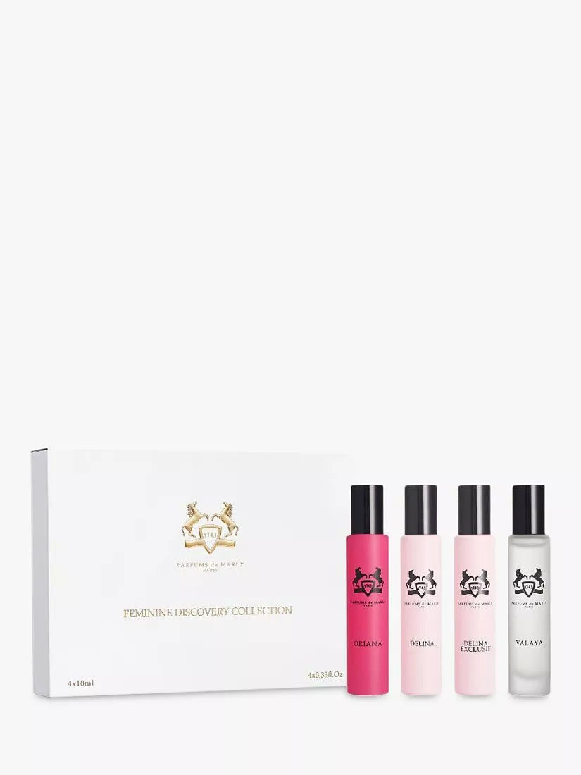 Discover the exquisite fragrances of Parfums de Marly's Feminine Discovery Collection – a luxurious gift set perfect for any occasion. This curated selection of four iconic scents offers a diverse olfactory journey, allowing you to explore the brand's signature blend of elegance and refinement. Each perfume is presented in a convenient 10ml size, making it ideal for travel or sampling.