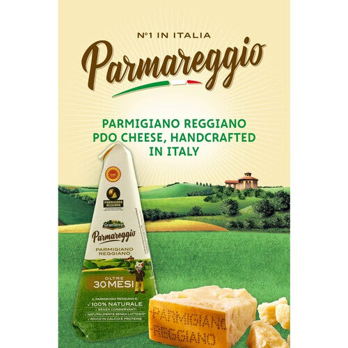 Parmareggio Parmigiano Reggiano achieves a robust flavour through extended maturation of 30 months. This premium cheese uses high-quality milk, resulting in an intense, lingering aroma with subtle notes of local herbs and flowers.