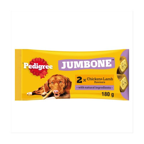 Delicious, low-fat dog treat chews Pedigree Jumbone treats cleverly combine a tough chewy outer with a succulent, tasty centre.