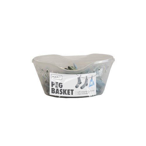 Read MoreStreamline laundry routines with this beg basket set. This convenient set combines practicality with a durable design, making it an essential addition to any household.Each set comes with a plastic peg basket with an attached hook so it can be stored easier or hung on a washing line during use, and 36 individual pegs in assorted colours.