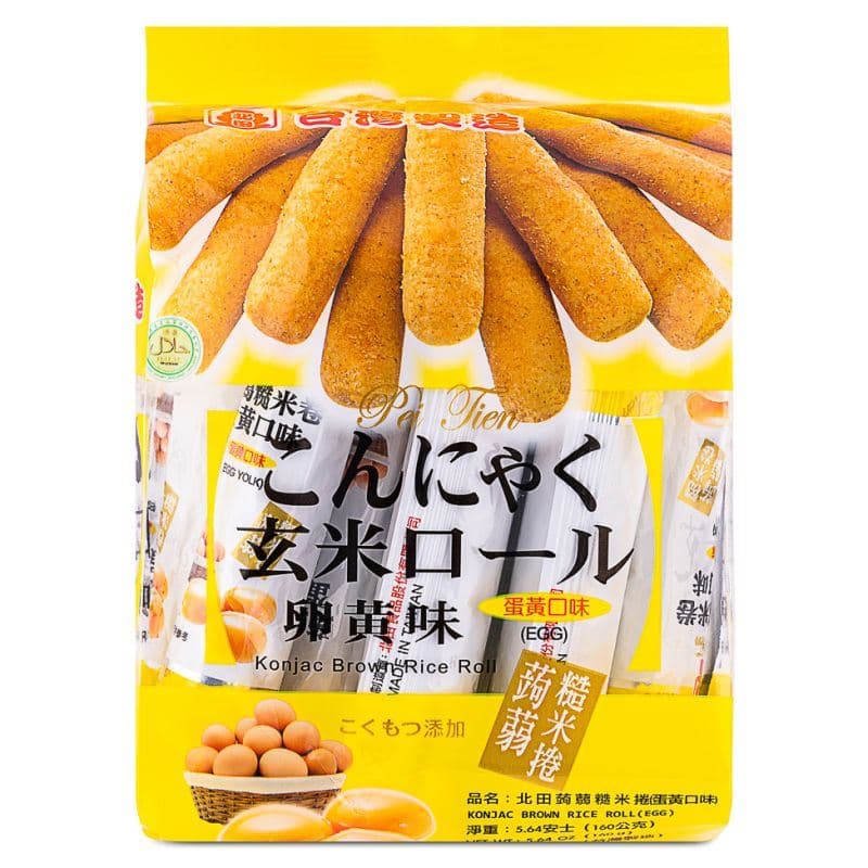 Discover Pei Tien Konjac Brown Rice Rolls, a delightful and unique Taiwanese snack with a creamy egg yolk flavour. These light and crispy rolls are a delicious and satisfying treat, perfect for a healthy snack or as a fun topping for desserts.