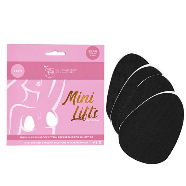 Our Mini lifts go more in the centre of the breast and don’t come as high on the breast bone as our Original tape due to not needing to hold as much weight. This makes this style perfect to wear with low cut styles with thin spaghetti straps. Note: This style doesn’t cup the whole breast like our original tape so isn’t recommended for larger/wider breasts. ◦ Long lasting wear: Perky Pear boob tape is sweat proof, waterproof and hypoallergenic ◦ Gentle on skin: stretchy soft cotton adhesive breast tape that moves with you; ideal for backless, strapless and plunging neck lines ◦ Discreet size: Perky Pear mini lift boob lift tape can be angled to suit any tricky neckline; created for smaller boob sizes who want maximum lift with minimum coverage ◦ Voted best by press: strong and long lasting; 4 pieces of nude tape included ◦ Unique patented design: Heat Activation Adhesive Technology allows adhesive to bond gently to the skin and gets stickier the longer it is worn