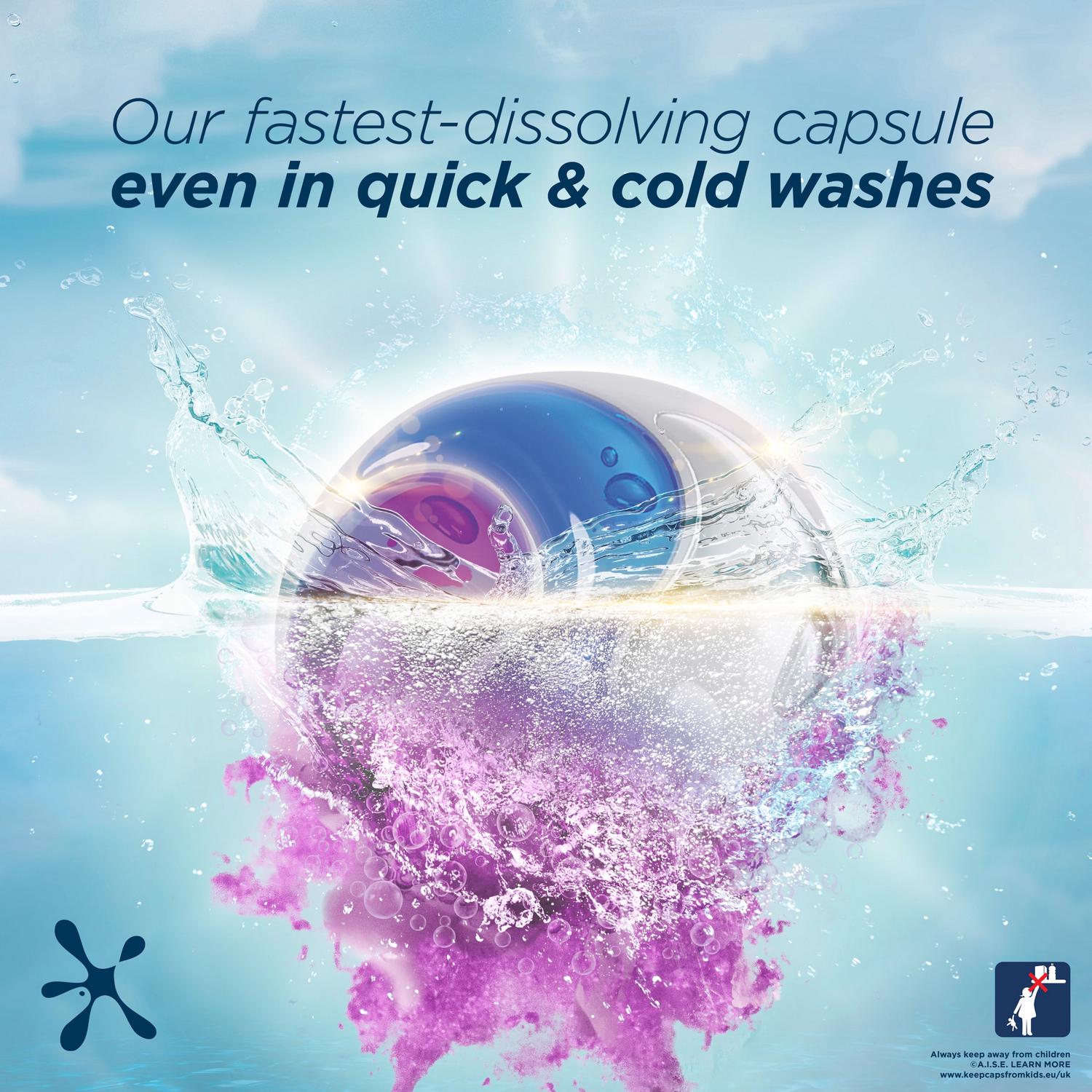 Our fastest-dissolving laundry detergent capsules offer outstanding stain removal, with no residues even in quick and cold washes