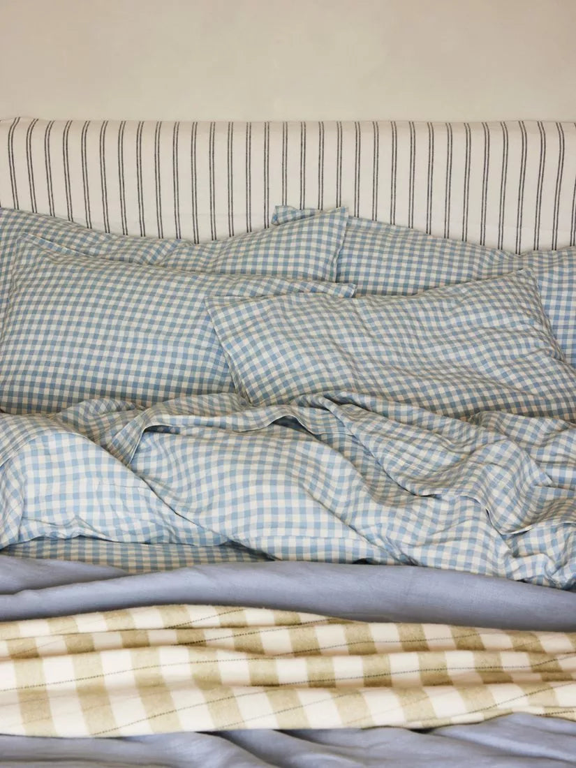 Timeless yet on-trend, Gingham linen blend bedding from Piglet in Bed is the ultimate choice for modern cottagecore style. Made from high-quality fibres, the breathable fabric combines the effortless look of linen with the softness of cotton. Duvet covers are finished with coconut shell button fastenings and handy corner ties inside to prevent your duvet from slipping.