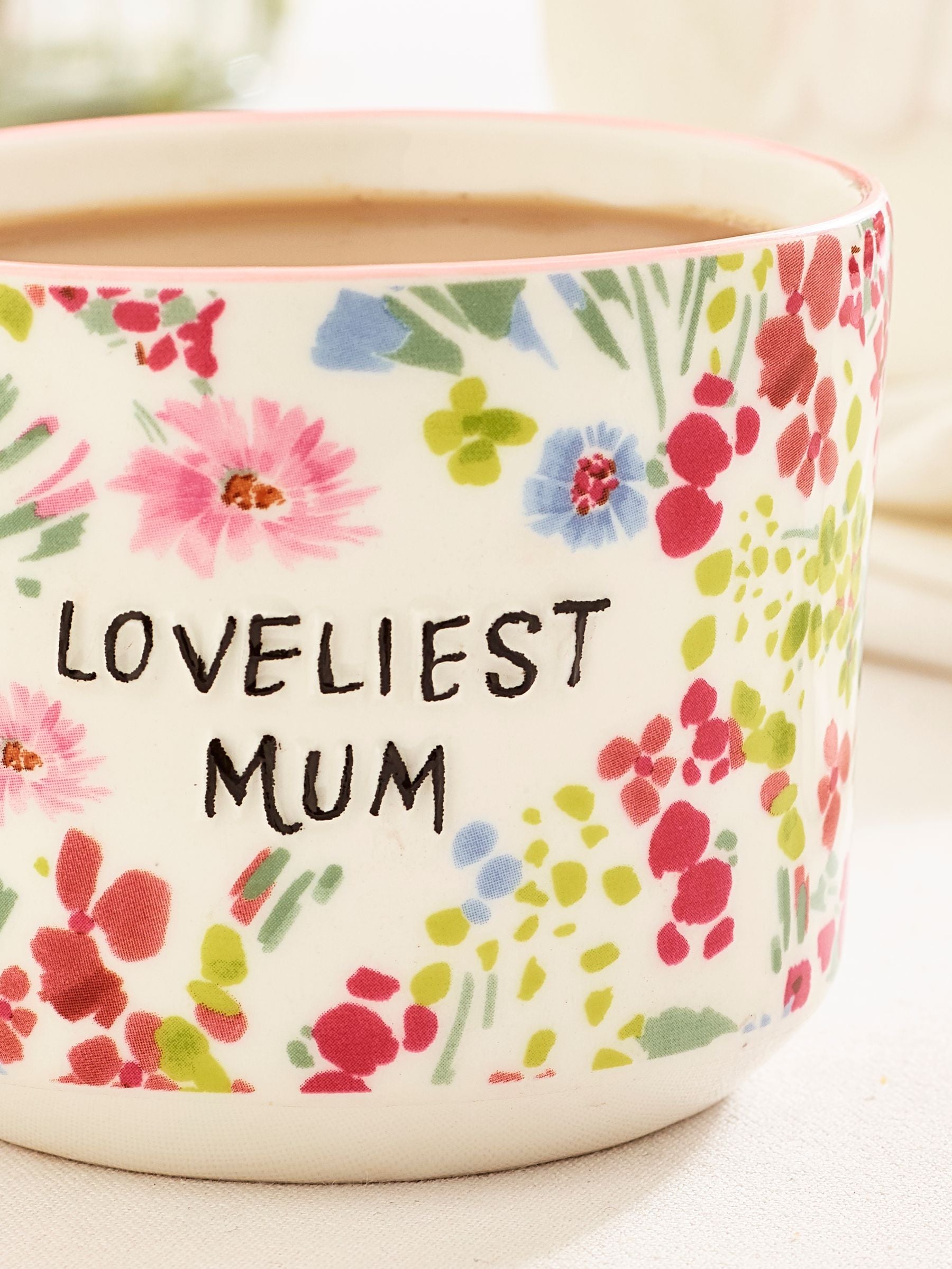 The perfect gift for a lovely mum, this floral patterned mug features hand painted wording. With a pretty patterned design, this mug is made from durable stoneware making it long-lasting. A great way to show your mum you care.