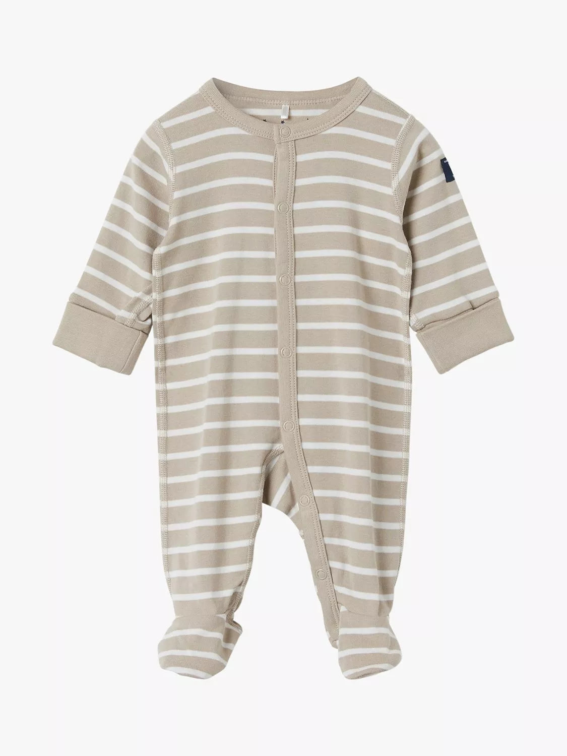 This Polarn O. Pyret stripe sleepsuit is made to last, using quality soft GOTS organic cotton. Designed with clever fold-down cuffs which allow extra growing room and popper fastenings to make changing easy.