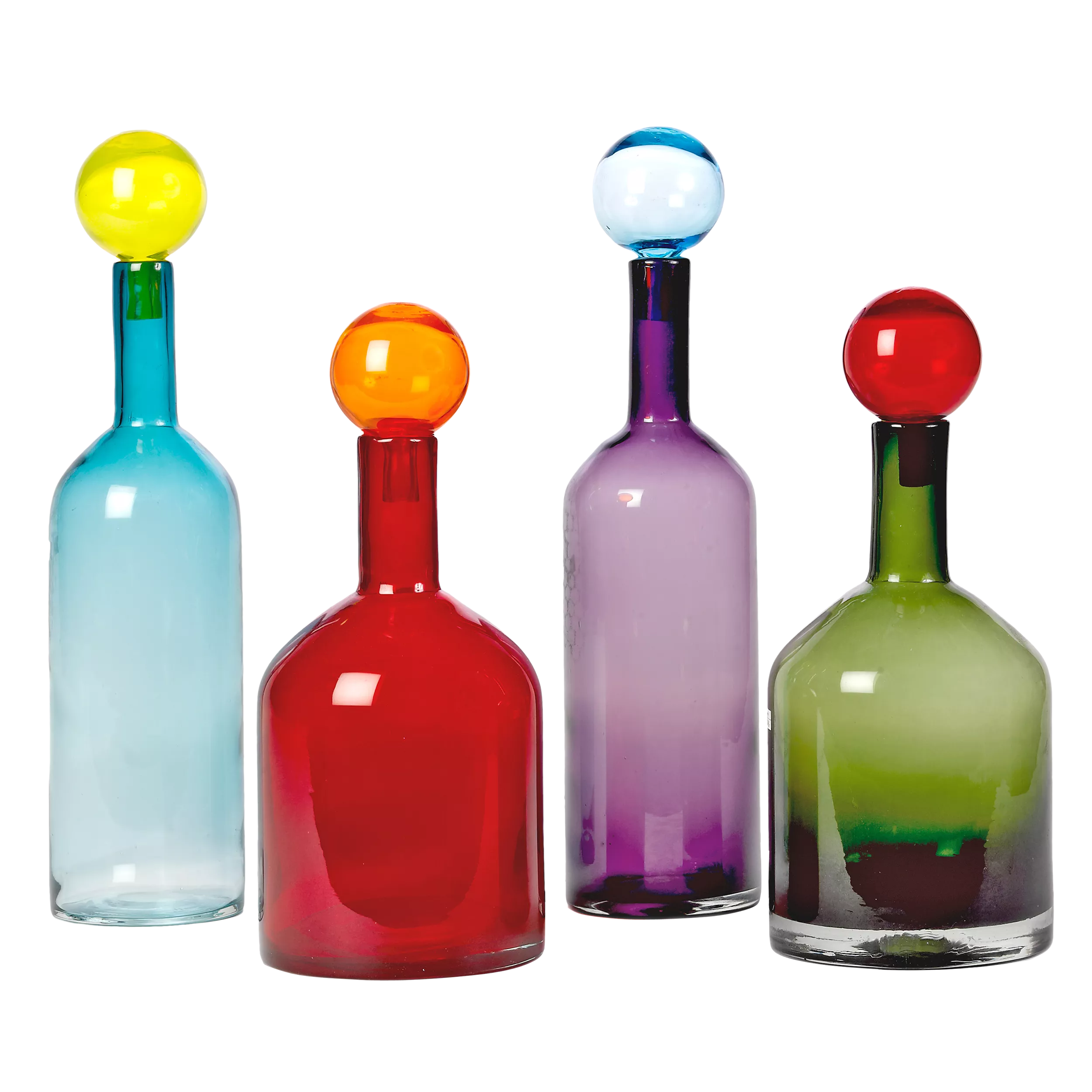 Four large glass ornaments from the Bubbles and Bottles collection from pols potten. Hand-worked and mouthblown to create maximum impact, each bottle has a striking shape with a contrasting colour stopper, making a beautiful and giftable display piece on its own or grouped together with other Bubbles and Bottles ornaments from pols potten.