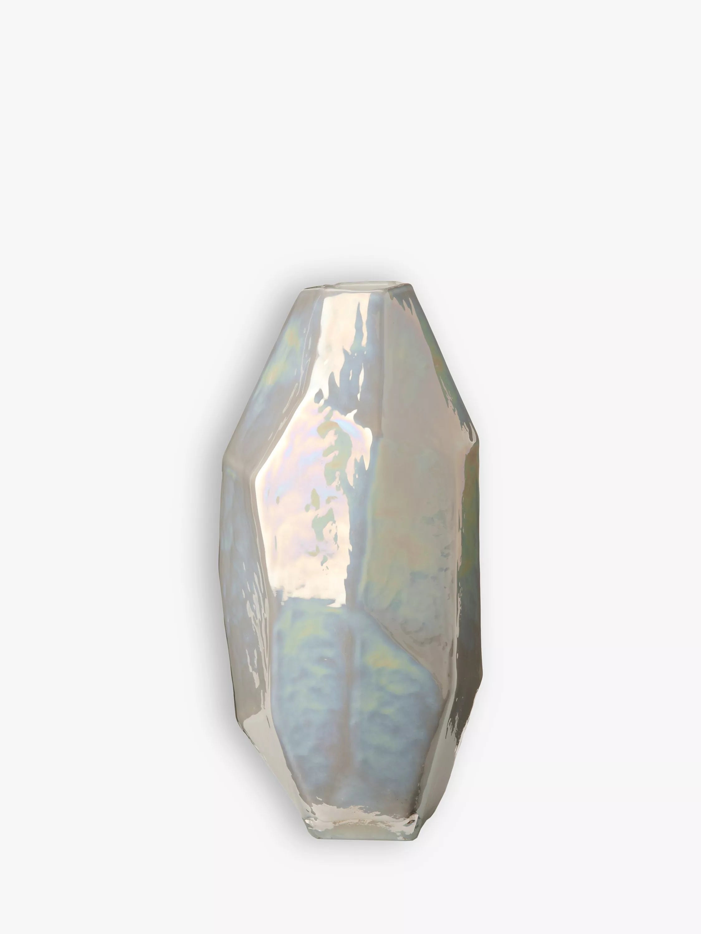 Made from coloured glass with a mother-of-pearl coating, this pols potten vase has a sculptural quality which means it won't look out of place even when empty.