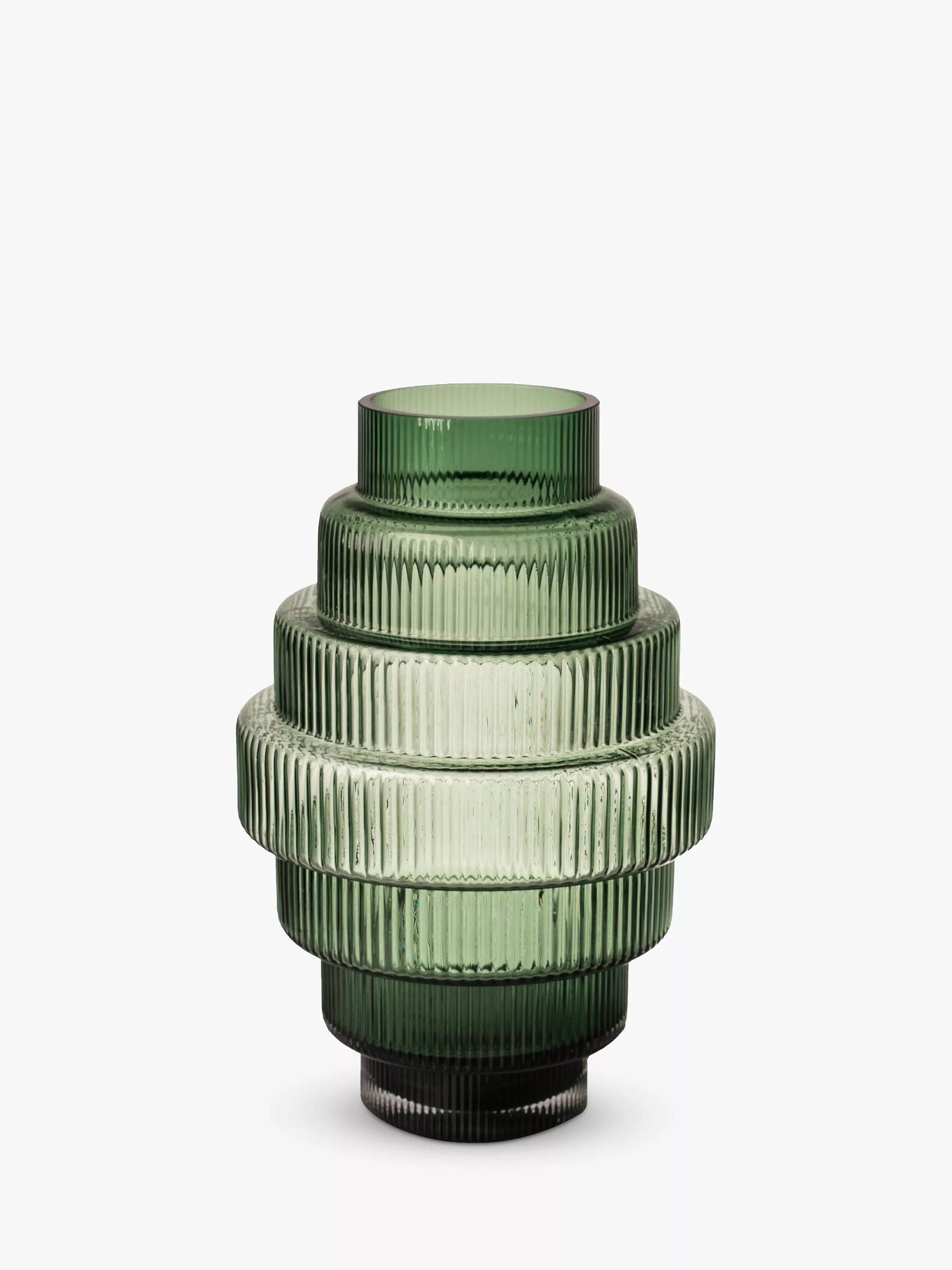 Made from full-coloured mouth-blown glass the Steps vase from pols potten is a modern take on a traditional barrel vase, using stepped sides to create the same shape. The ridged detail adds texture and means that when sunlight hits it the vase will develop its own glow.