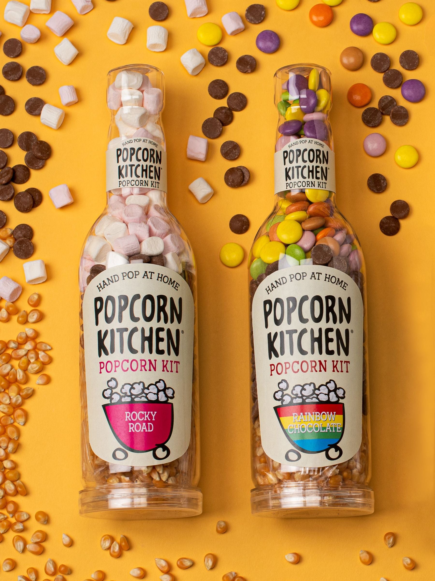 Our Pop At Home Kits provide all you will need to make the most delicious Gourmet Chocolate Popcorn at home! With easy to follow instructions on the pack, each kit will bring ‘Pure Popcorn Happiness’ to any Movie Night or Big Night In…the Kids will love making it! Our handy twin pack has double the fun and popcorn magic!! Pop at home kit Rainbow beans 440g, gift bottle contains our gourmet popping corn kernels, Belgian Chocolate Buttons and Rainbow Chocolate Beans. Pop at home Rocky Road 360g, gift bottle contains our gourmet popping corn kernels, Belgian Chocolate Buttons and yummy marshmallows. Each kit is measured to perfection to create 14 servings of the most delicious Chocolatey Popcorn! This pack will bring the ultimate gourmet Chocolate Popcorn experience to your home! Gluten free, vegetarian. Pack dimensions height 27cm x 7.0cm x 7.0cm