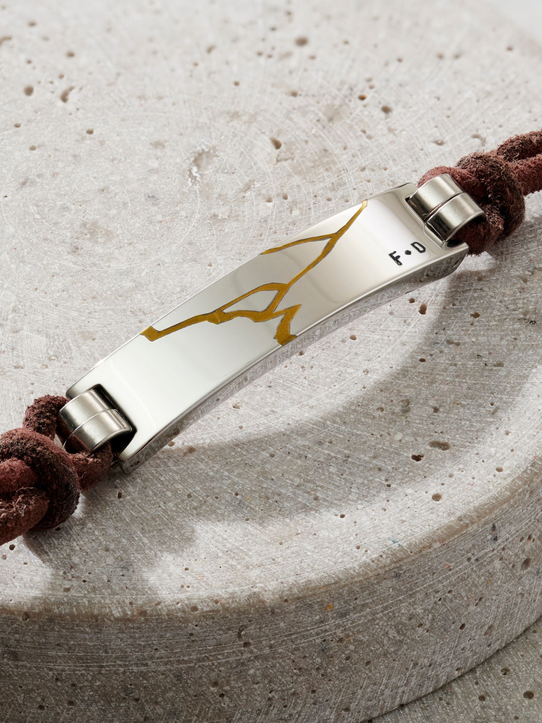 This gorgeous leather cord bracelet is the perfect gift for him. Made from leather cord featuring a steel bar which is engraved with a kintsugi-inspired design and your chosen initials. Available in dark brown leather.