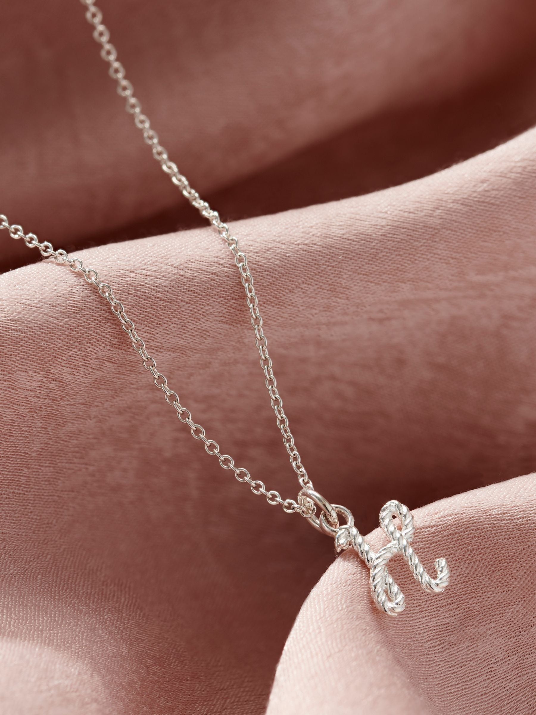 We love this stunning pendant necklace, crafted from Sterling Silver in our Brighton workshop. The design of your chosen initial has a unique rope texture. Our jewellers suspend your chosen initial from one of our classic trace chain necklaces. Made From: 925 Sterling Silver. Dimensions: Initial measures approx small 1cm. Comes suspended on 18" chain.