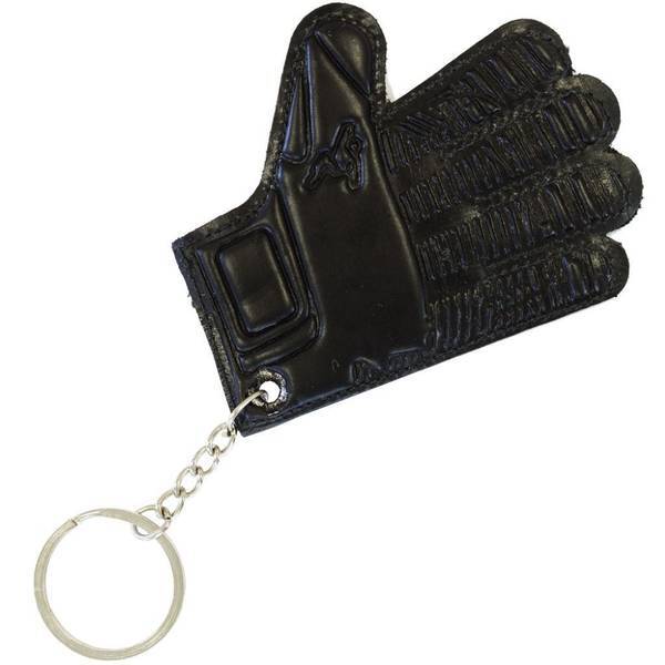 This Precision Elite 2.0 accessory is a unique football keyring crafted in the distinct shape of a goalkeeper glove. It features a black, textured design mimicking performance sports gear, making it a notable addition to your keys or bag.