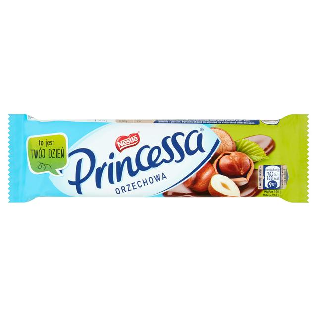 Enjoy the satisfyingly layered texture of the Princessa Wafer Bar, featuring delicate wafers filled with rich hazelnut cream. This confection is perfectly coated in smooth milk chocolate for an enjoyable treat whenever you need a pause. Each 34g portion contains 188 kcal, referencing the general adult daily intake guidelines.