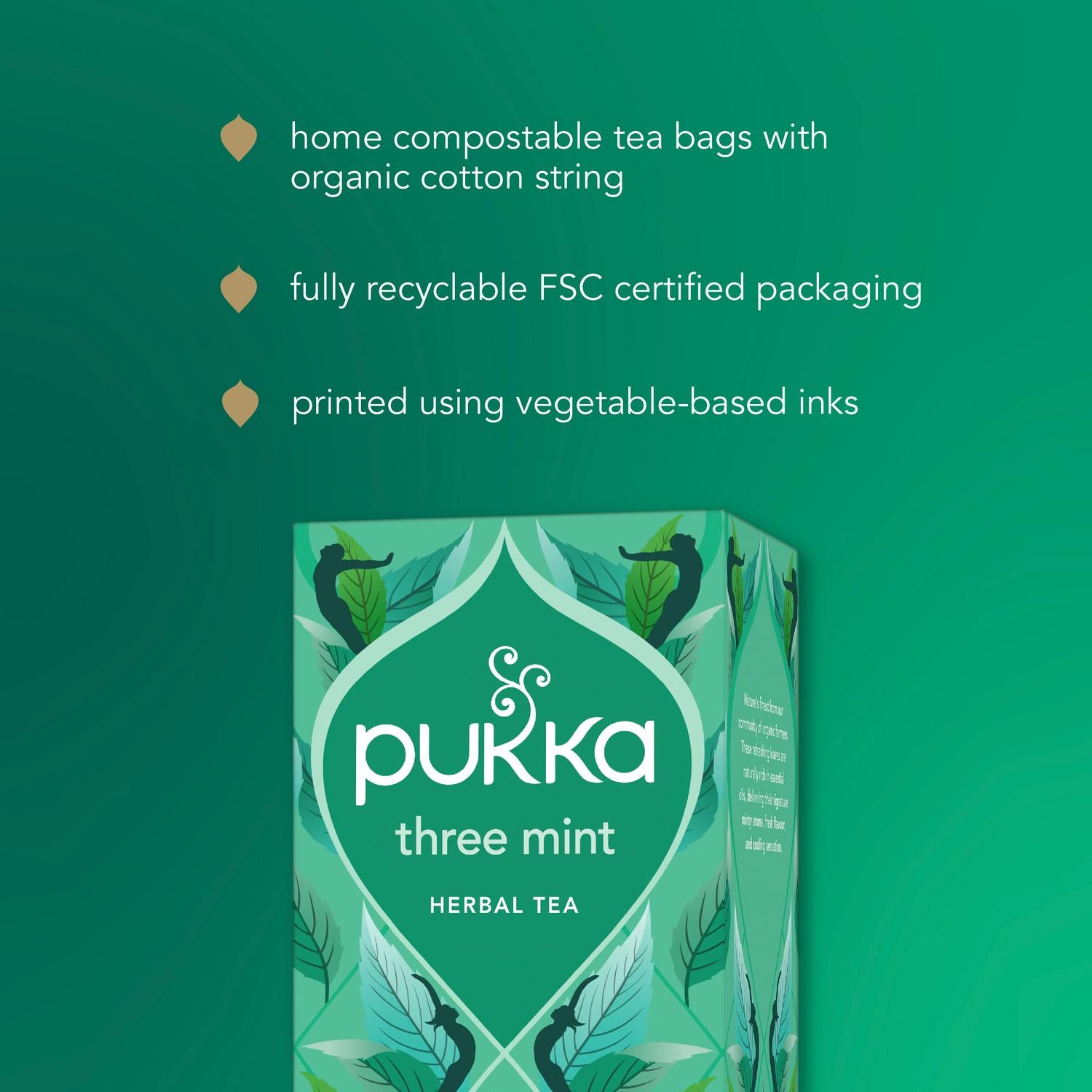 This Pukka Three Mint infusion combines spearmint, peppermint, and fieldmint into a naturally caffeine-free herbal blend. Expertly created by Pukka's herbal team, this tea is designed to be soothing, particularly after eating. You receive 40 servings in this pack.