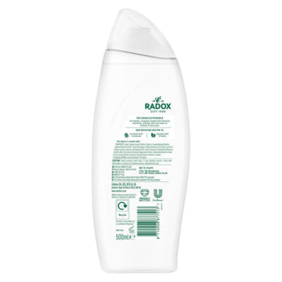 Product InformationRADOX Mineral Therapy Feel Moisturised Shower Gel's mood-boosting fragrance combines the blissful scent of chamomile with the subtle sweetness of oats to help you unwind in a soothing shower experience. This moisturising skin cleanser features our unique blend of 4 minerals and 13 herbs, which activates with hot water to transform your shower into a mineral therapy ritual. Suitable for daily use, our body wash rinses off easily, leaving your skin feeling fresh, clean and moisturised. What’s more, the RADOX bottles have a twist-off cap so it’s easy to pour into them, fuss free! Simply squeeze out RADOX shower gel for men and women, lather on body and rinse well to leave your skin refreshed and your mind soothed. If eye contact occurs, rinse well with warm water. If rash or irritation occurs, discontinue use. From as early as 1908, RADOX founders used a unique blend of minerals and herbs to ease the fatigue of weary bodies and minds. From reviving the tired feet of early travellers to helping hardworking people find a moment of solitude and sanctuary – RADOX is rooted in the transformative power of mineral therapy. We have a long history of everyday therapy, we call it your daily R&R, RADOX Mineral Therapy. Enjoy our Feel Moisturised Shower Gel.