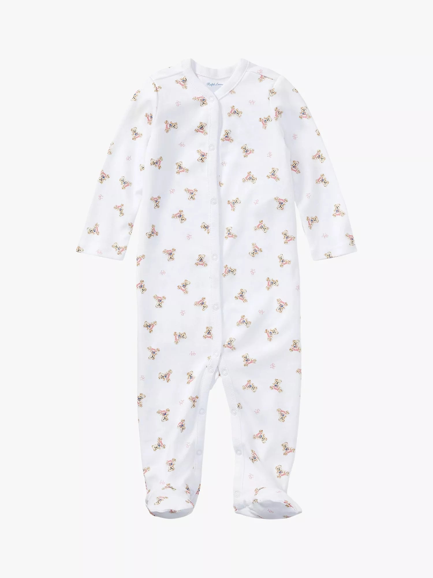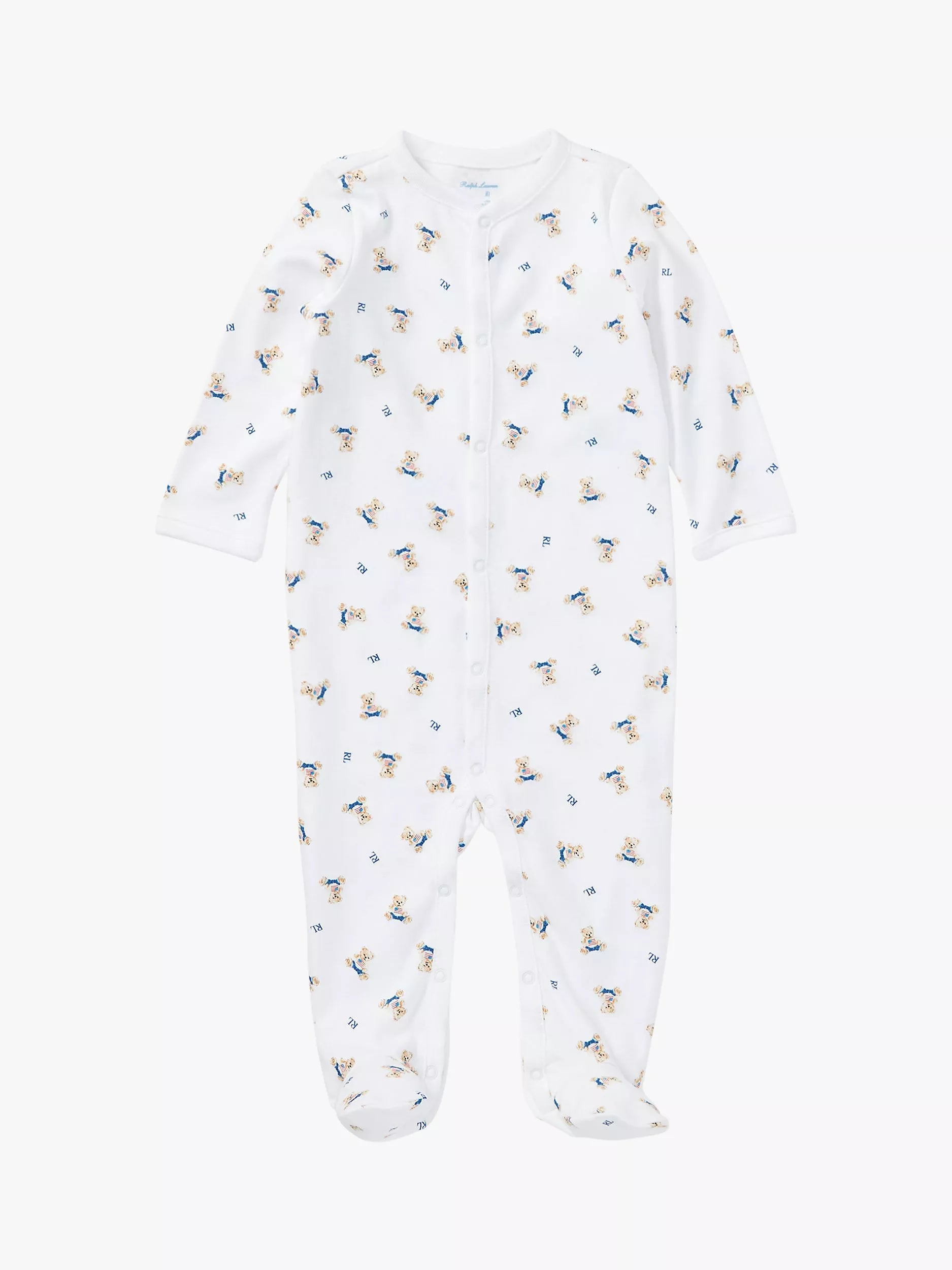 A playful take on the essential one-piece, this footed coverall from Ralph Lauren is made from irresistibly soft cotton and features a print of its cute Polo Bear dressed in an iconic RL look.