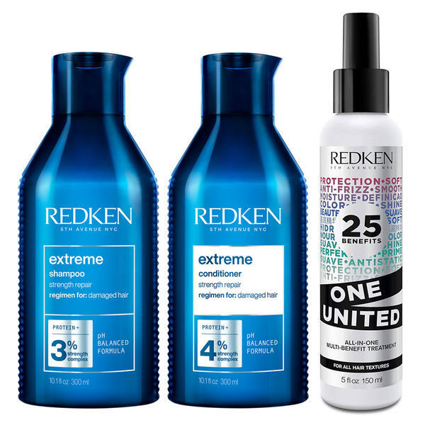 Read MoreThe Redken Extreme & One United Bundle features a strengthening shampoo, conditioner, and leave-in treatment with biotin and coconut oil to repair, protect, and boost hair growth for shiny hair