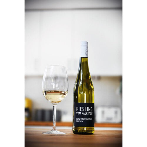 The vineyards for the Riesling vom Kalkstein are located in the north of the Pfalz in the area called the Mittelhardt-Deutsche Weinstrasse. The soils are rich in limestone (German = Kalkstein), resulting from ancient sea sedimentations with skeletal fragments of marine organisms. This type of soil is relatively thin and porous and encourages the vines to root deeply, giving very fine and elegant wines.