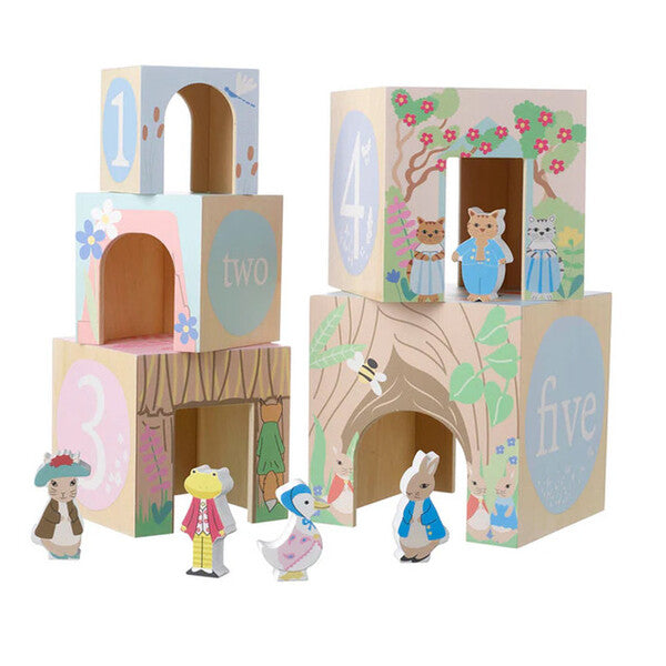Explore Beatrix Potter's enchanting world with these Peter Rabbit wooden nesting boxes, perfect for little hands.