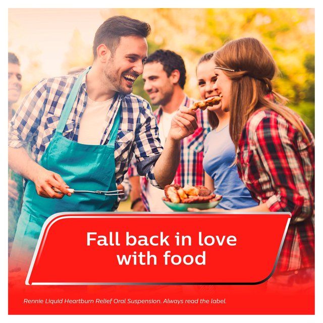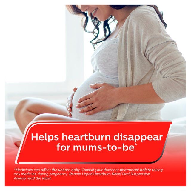 Rennie Liquid Heartburn Relief provides fast, soothing relief from Heartburn & Indigestion. The liquid forms a protective layer on top of the stomach contents to prevent stomach acid escaping into the food pipe, which causes pain and discomfort. The UK's No.1 Heartburn & Indigestion Tablet Brand - now available in a liquid.- Fast, soothing relief- Can be taken day or night for fast relief- Forms a protective layer on top of the stomach contents to prevent stomach acid escaping- Suitable for use during pregnancy & breast-feeding - as many as 8 out of 10 women experience indigestion at some point during their pregnancy.- Sugar-freeSodium Alginate, Sodium Bicarbonate, Calcium Carbonate