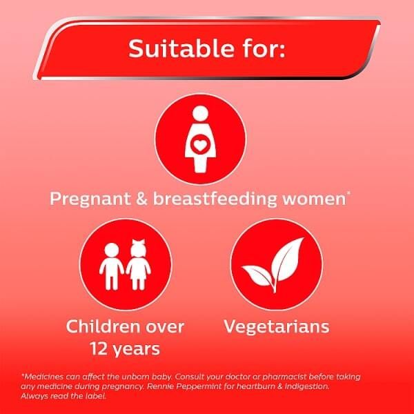 Fast, effective relief from heartburn and indigestion, Rennie Peppermint tablets offer soothing relief when you need it most. These convenient tablets are perfect for on-the-go relief and are suitable for use during pregnancy and breastfeeding.